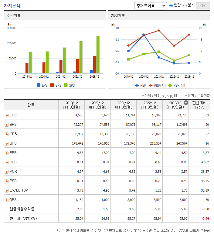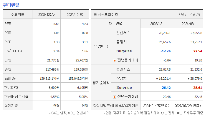 💹 PER/EPS (2024.03): 5.33배 / 23,526원.