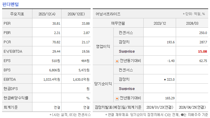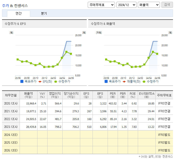 💹 PER/EPS (2024.03): 26.19배 / 588원