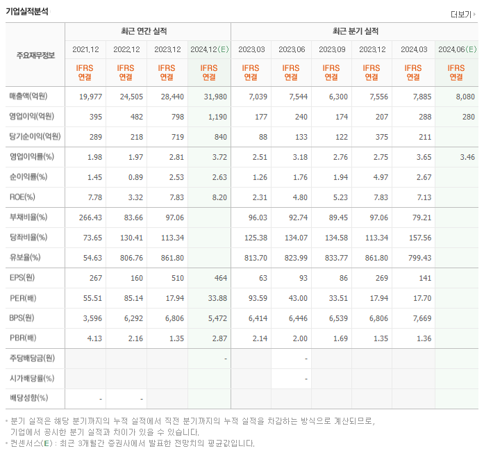 📊 PBR/BPS (2024.03): 2.01배 / 7,669원