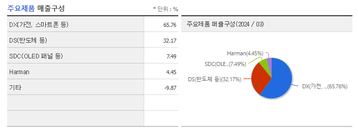 DS 부문: DS(Device Solutions) 부문은 DRAM, NAND Flash, 모바일 AP 등 반도체 및 부품을 생산하고 있으며, SDC(Samsung Display Company)는 스마트폰용 OLED 패널 등을 제공합니다.