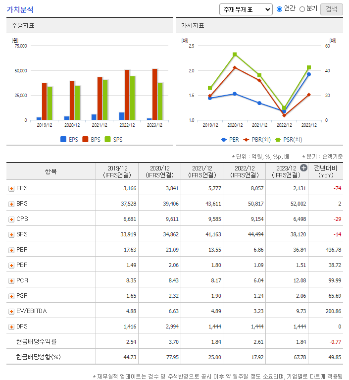 📘 PBR/BPS (2024.03): 1.40배 / 53,339원