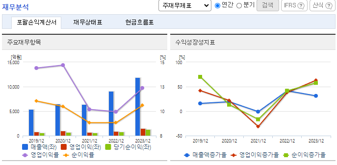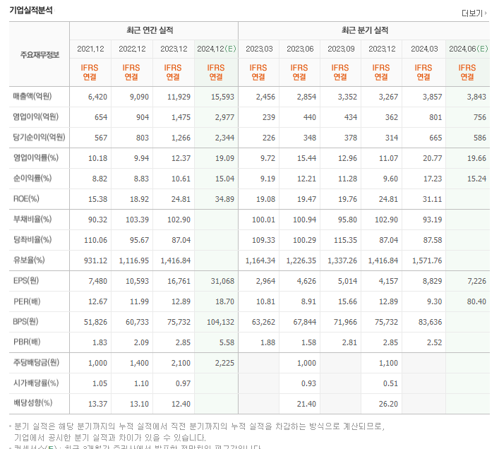 PBR/BPS(2024.03)는 6.95배와 83,636원입니다.