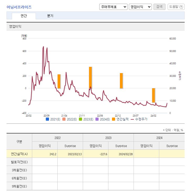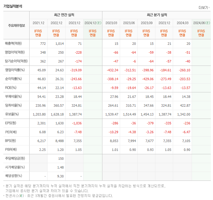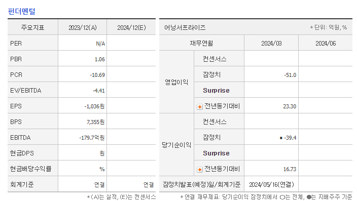 📉 PER/EPS (2024.03): N/A / -986원