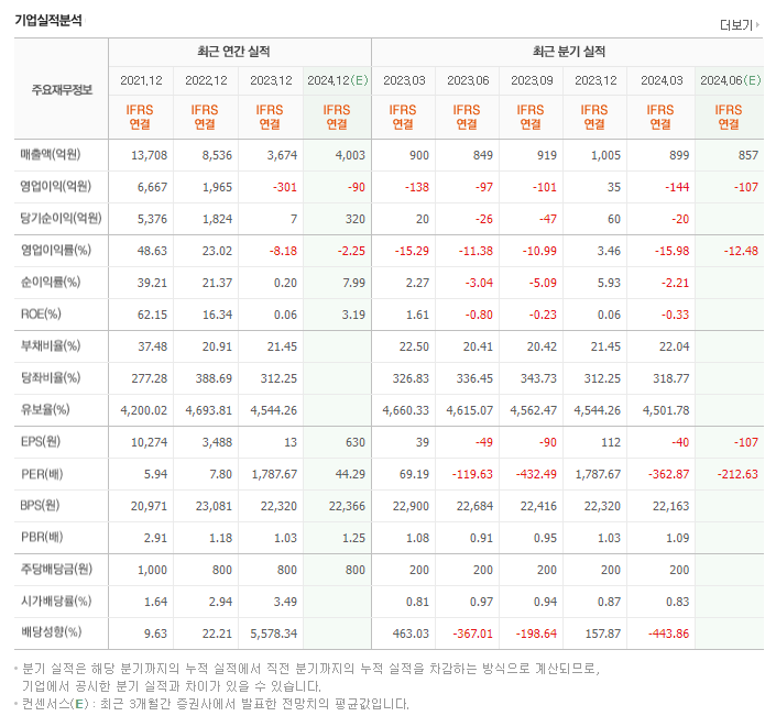 📉 PER/EPS (2024.03): N/A l -66원