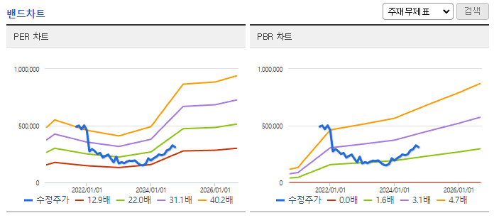 RSI 지표는 54.13으로 중립적인 위치에 있으며, 주가는 어느 방향으로든 움직일 가능성이 있습니다. 상승할 경우 355,000원이 중요한 저항선이 될 것이며, 하락할 경우 20일 이동평균선인 300,000원 부근에서 지지를 받을 수 있습니다.