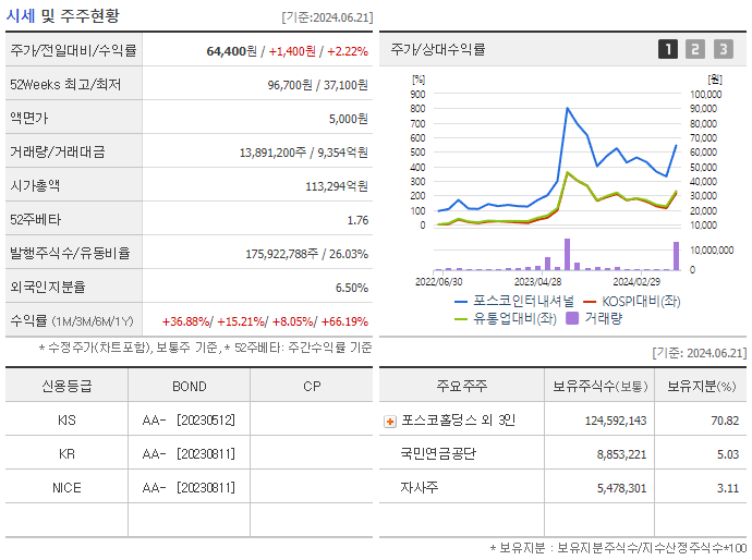 포스코인터내셔널은 글로벌 친환경 종합사업회사로서, 포스코 그룹에 속해 있으며, 다양한 사업을 영위하고 있습니다. 2023년 1월에는 LNG사업 밸류체인을 완성하기 위해 포스코에너지를 흡수합병하였고, 에너지, 소재, 식량바이오를 3대 핵심사업으로 선정하여 사업 구조를 빠르게 전환하고 있습니다. 포스코인터내셔널에 대해 자세히 알아보시고 도움이 되시길 바랍니다.