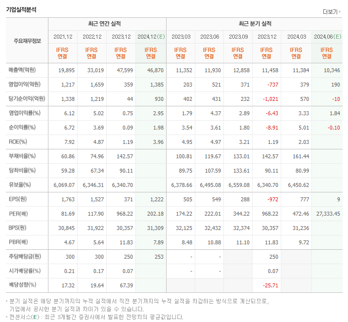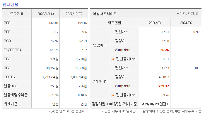 📈 PER/EPS (2024.03): 383.96배 / 642원