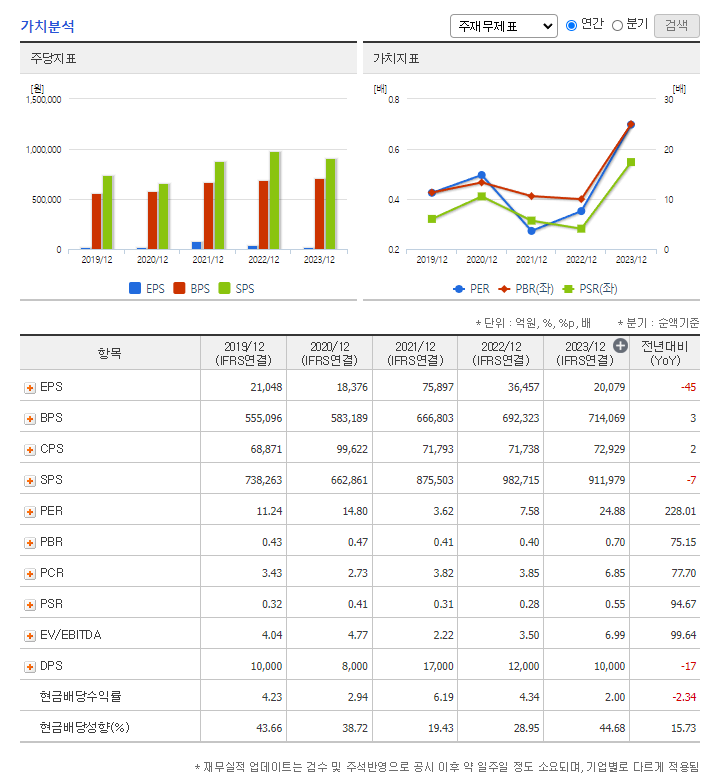 🔍 PBR/BPS (2024.03): 0.45배 / 722,130원