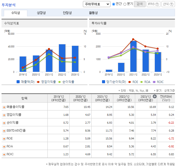 💹 PER/EPS (2024.03): 11.42배 / 4,964원.