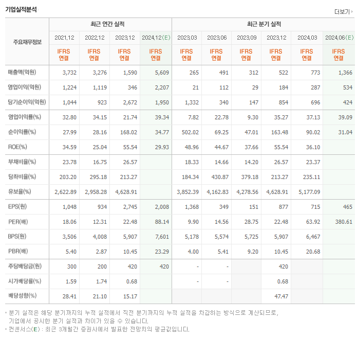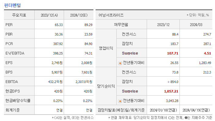 💹 PER/EPS (2024.03): 85.71배 / 2,092원