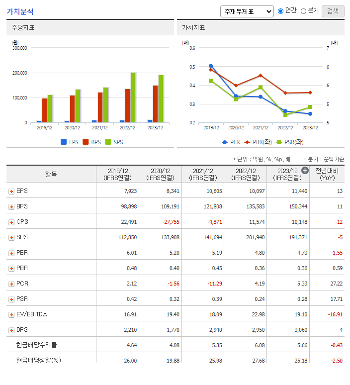 📘 PBR/BPS (2024.03): 0.58배 / 151,288원