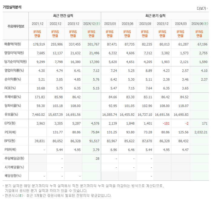 📈 PER/EPS (2024.03): 109.19배 / 3,146원