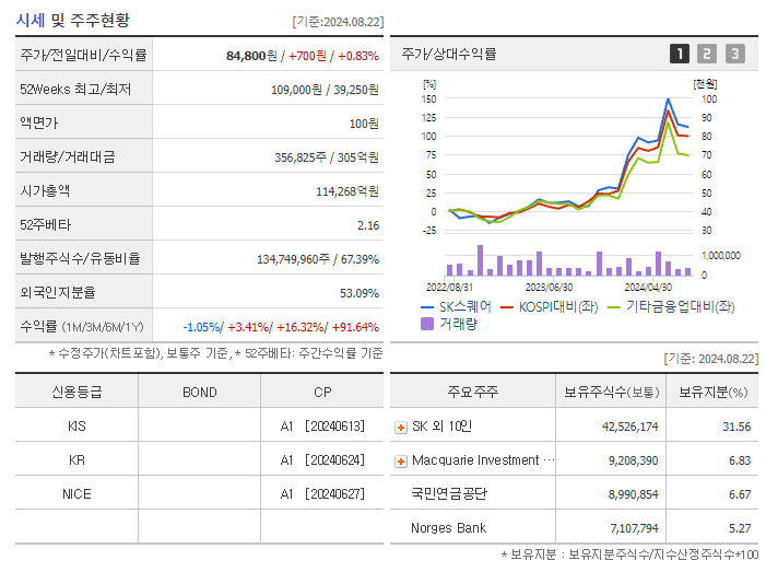 24.08.14 SK스퀘어 94,000 +2,000 매수 SK