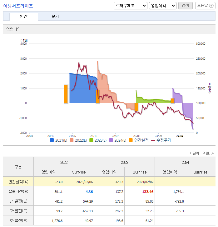 📉 추정PER/EPS: -16.02배 / -2,079원