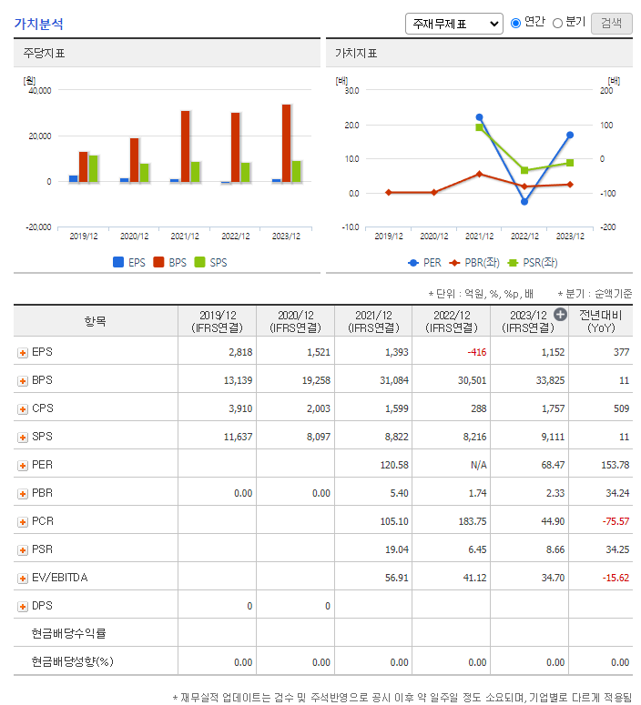 📉 PER/EPS (2024.06): N/A / -948원